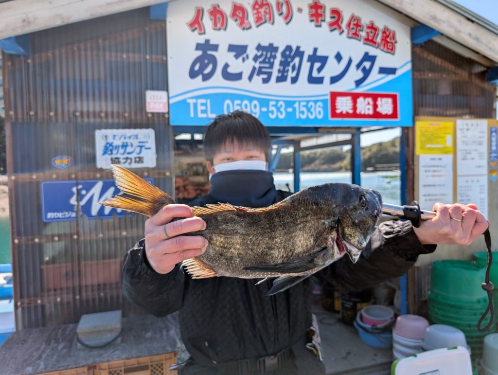 志摩市の出口さんが塩屋浦筏 チヌ43cm 1匹 仕掛/サオ5.3 ハリス1 チヌ針1 エサ/... -